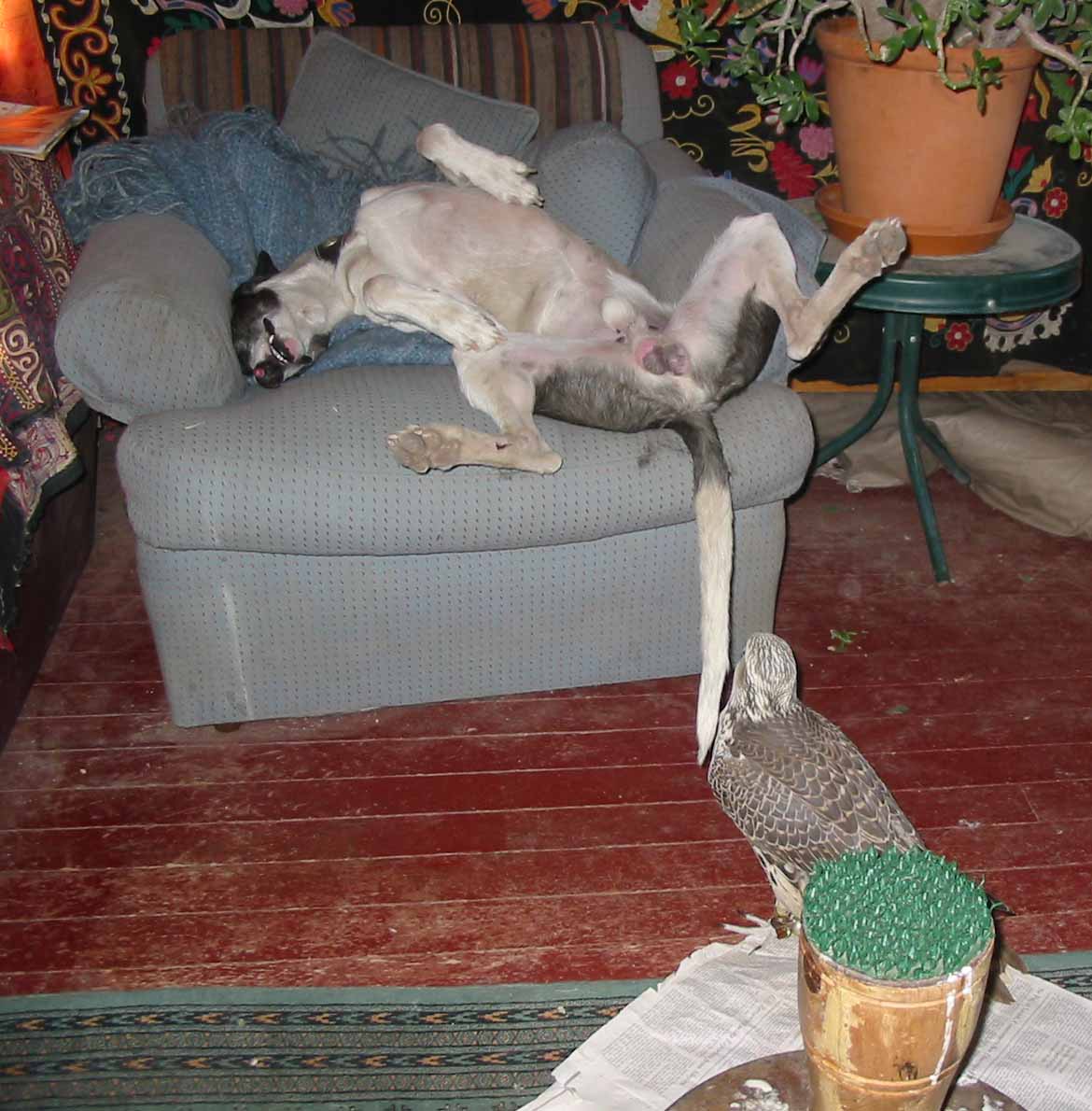 And near Gyrs and hybrids of all kinds and Sakers-- "Itilgas"-- best. Unfortunately most of my hunting pics were swallowed by the computer, so these are rather domestic,but I hope to reclaim some when I switch over.
