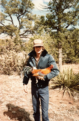 Earl also became my landlord after Bets died in November of 86, in Lemitar 4 miles north, a walk I could do in a pinch even in that icy winter of 86 and 7, sometimes with a spaniel or two and my old Browning Sweet Sixteen shotgun. The long low house had been built in the 1700's and had (non- working) solar panels, two folding chairs with a board over them for a kitchen table or desk depending on time of day, a mini- Olivetti manual typewriter, a single set of dishes, and a big comfortable bed. In eleven rooms. with no other furniture, and all my books already taken east to Newton MA for a season by Tommy McIntyre. It was COLD.